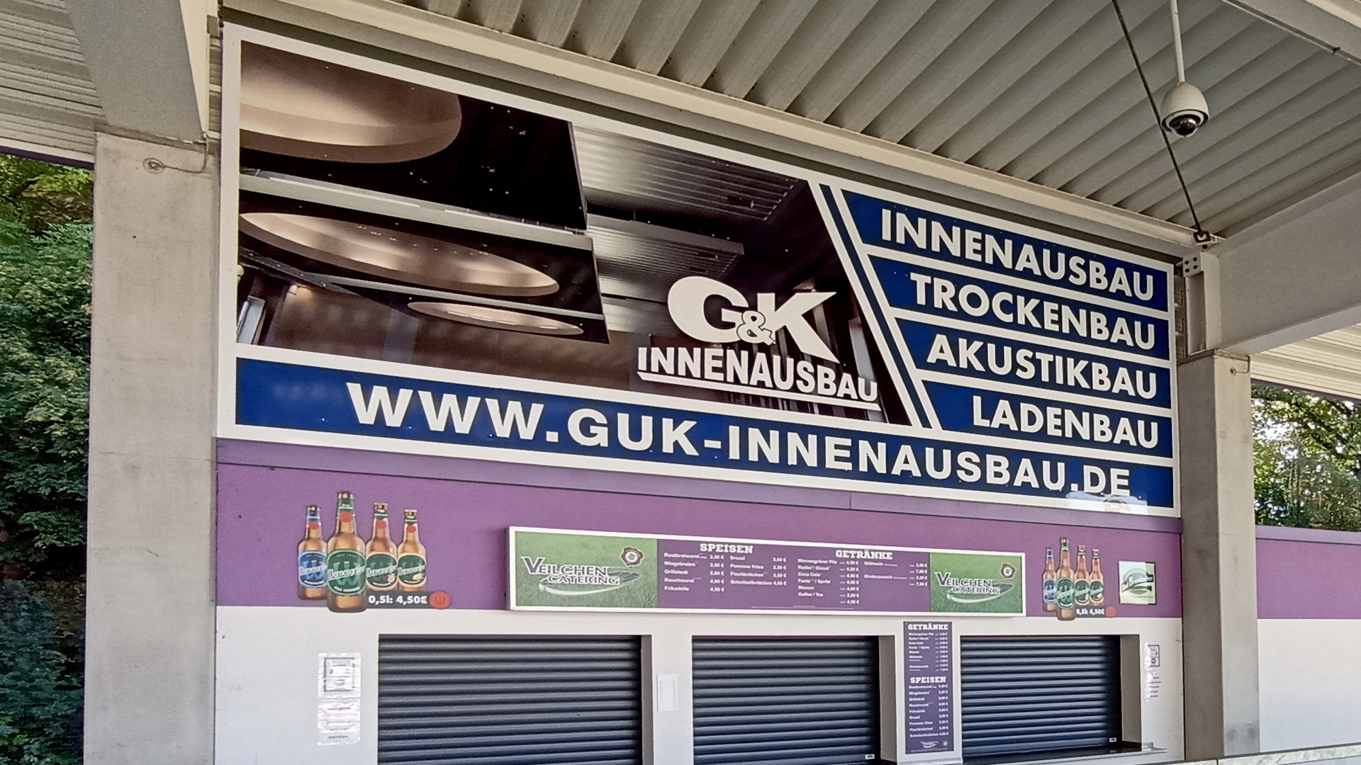 Acryl | Aluverbund | Anhänger-Beschriftung | Bandenwerbung | Fahne | Fahrzeugbeschriftung | Fassaden | Fensterbeschriftung | Flachglasfolierung | Gerüstplane | Kundenstopper | Leuchtbuchstaben | Leuchtkästen | LKW-Plane | PVC | Pylon | Schaufenster | Schilder | Sonnenschutz | Stadionwerbung | Wegeleitsysteme | Wegweiser | Werbeplane | uvm.